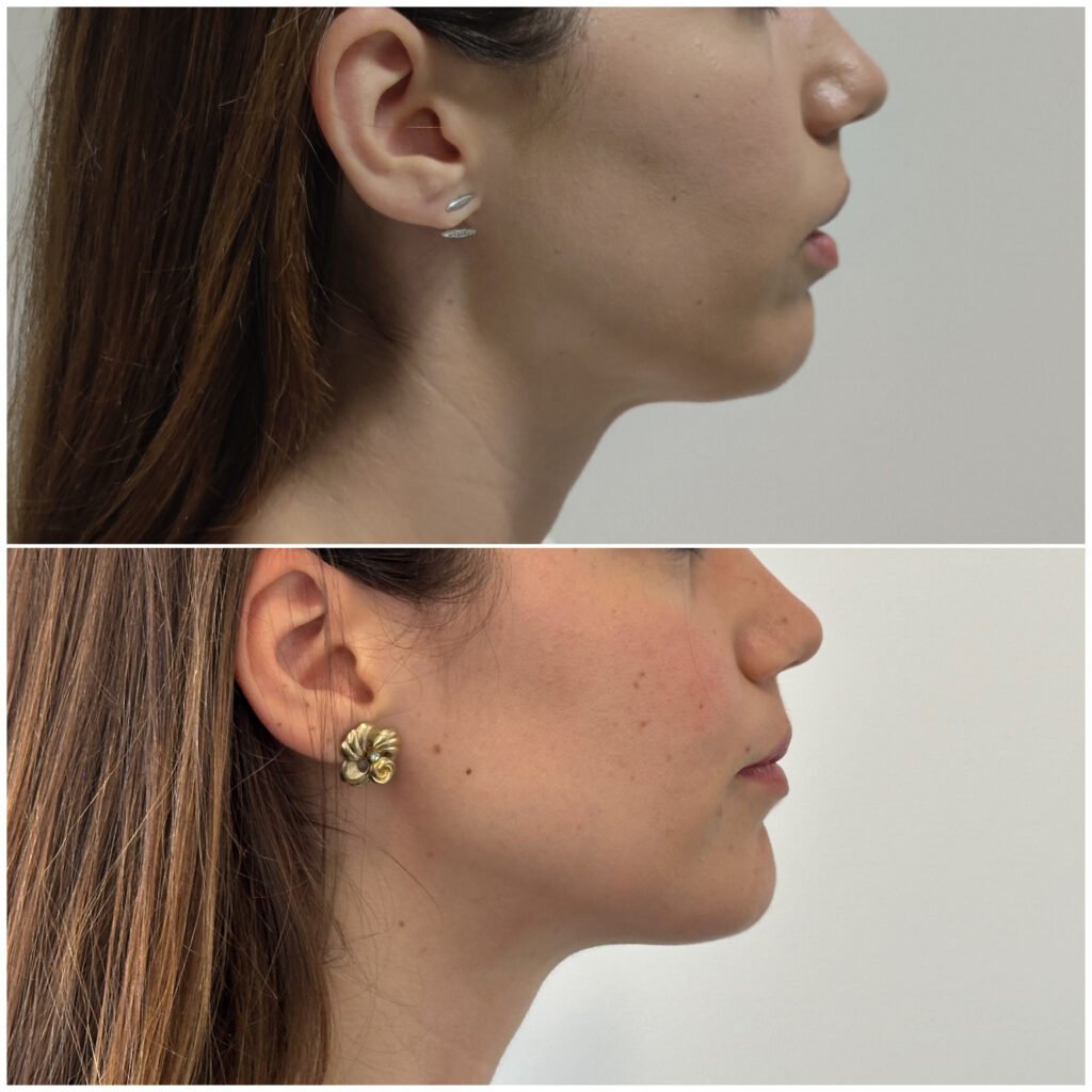 A cirurgia é realizada por via intraoral (por dentro da boca) evitando cicatrizes na face.