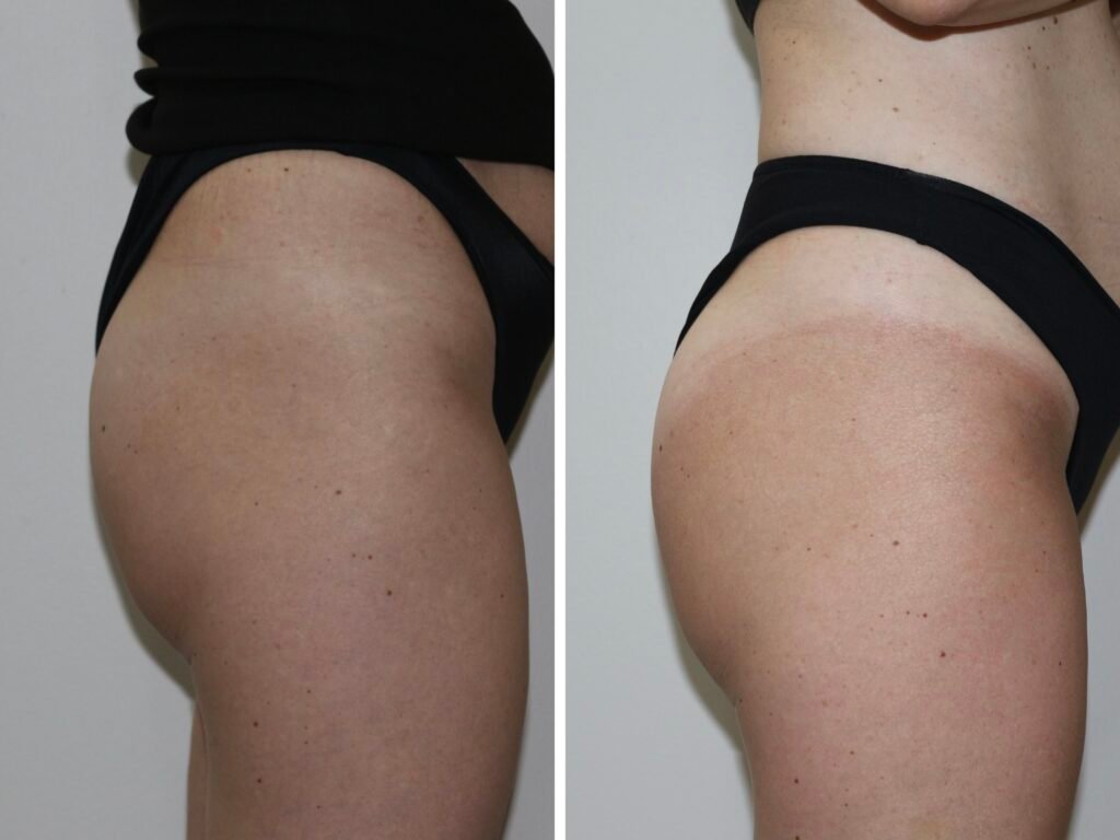 2 meses pós tratamento – Lifting de glúteo, volumização da região lateral e superior da anca, melhoria do contorno e tonicidade da pele.