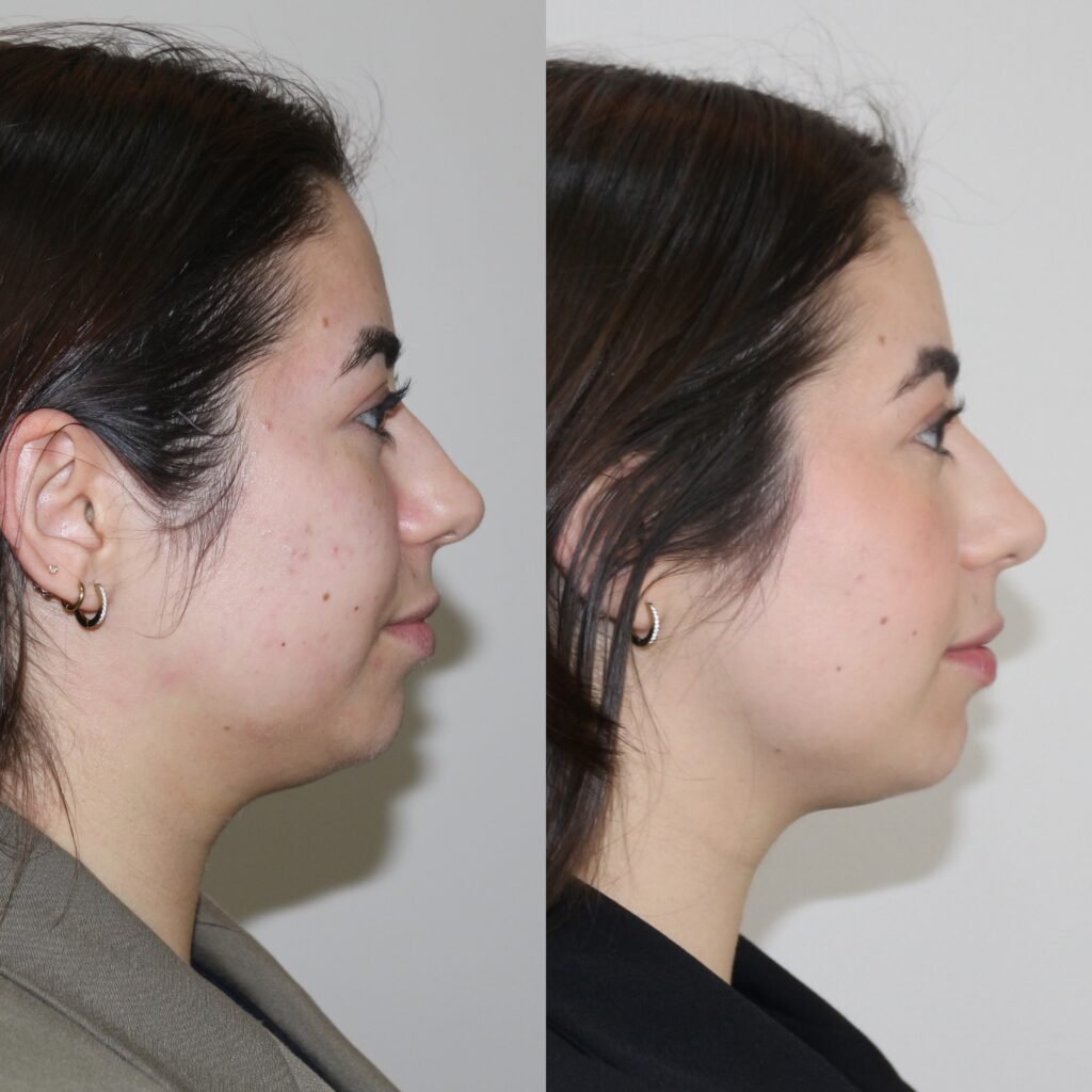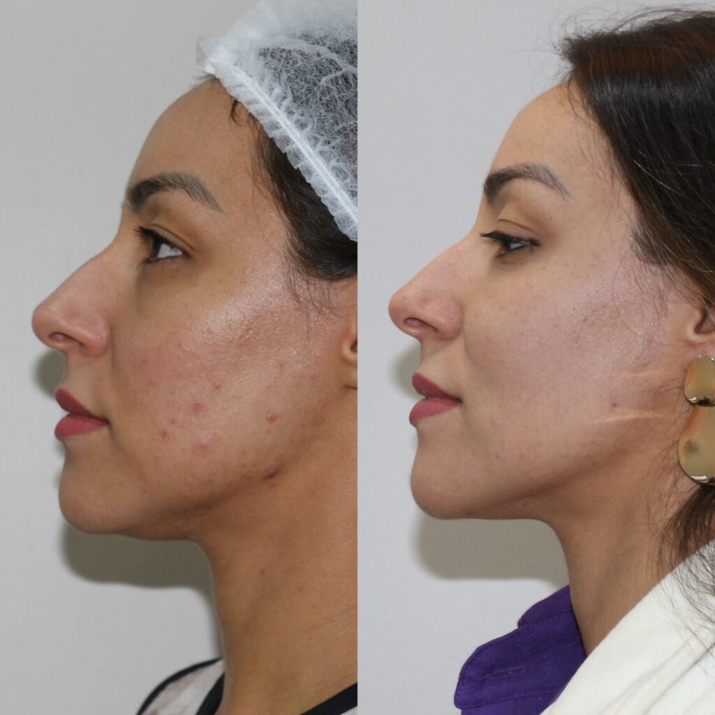 1 mês após uma sessão de ultaformer. Afinamento do rosto, liftling com melhoria do sulco nasogeniano, jowls e papada. Melhoria do contorno facial.
